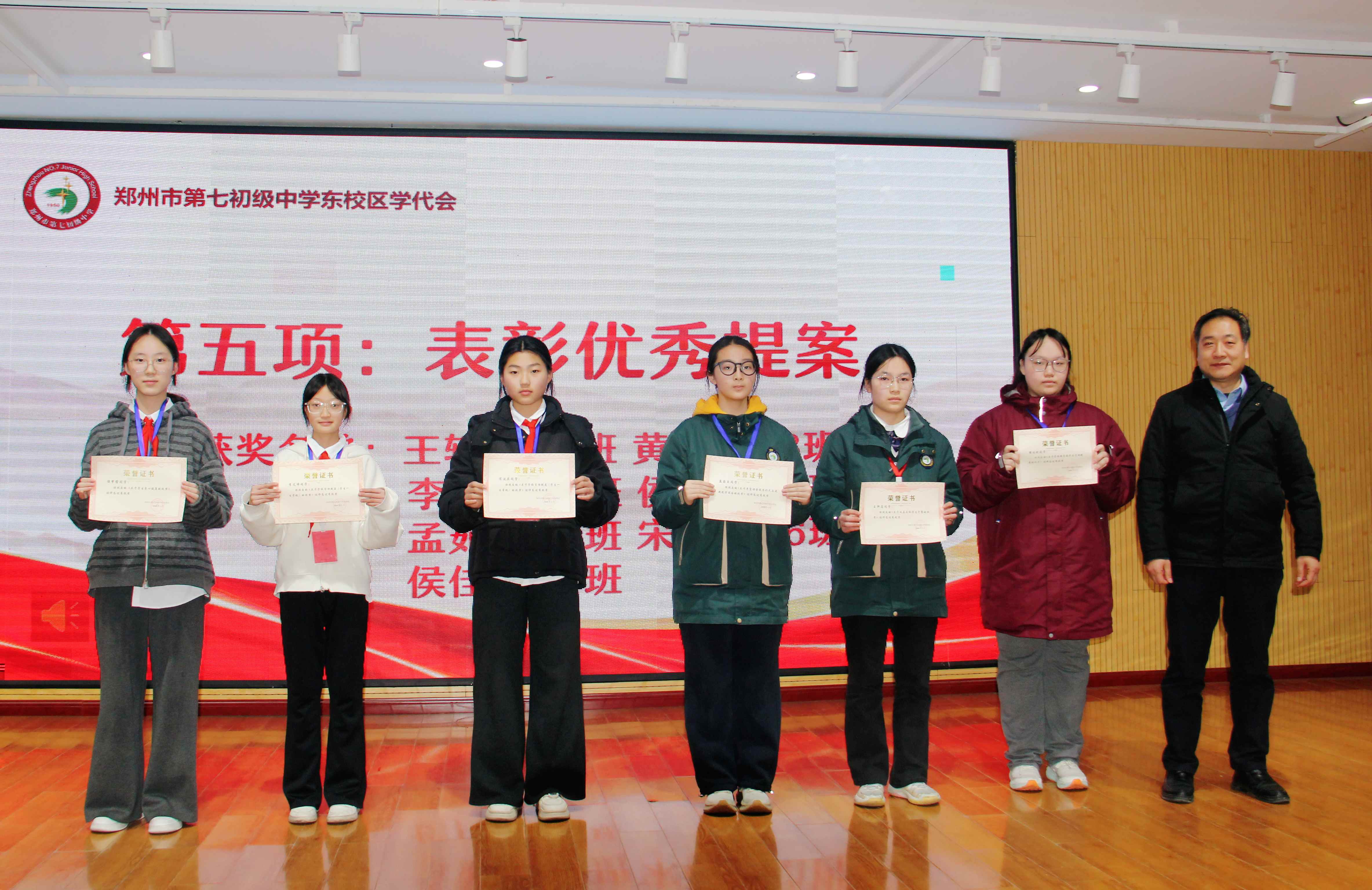 冬日和煦,青春激扬。1月14日,郑州市第七初级中学东校区第一届学生代表大会在报告厅隆重召开。校领导、教师代表与各班级学生代表齐聚一堂,共商学校发展。会议由八年级学生邱昱菡、宋波奕主持。