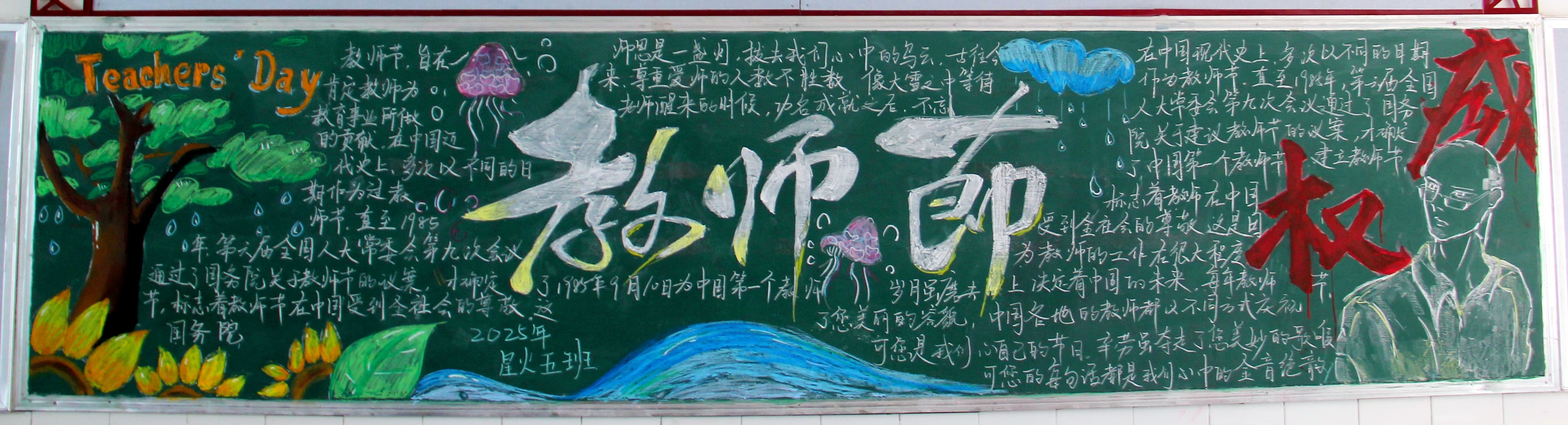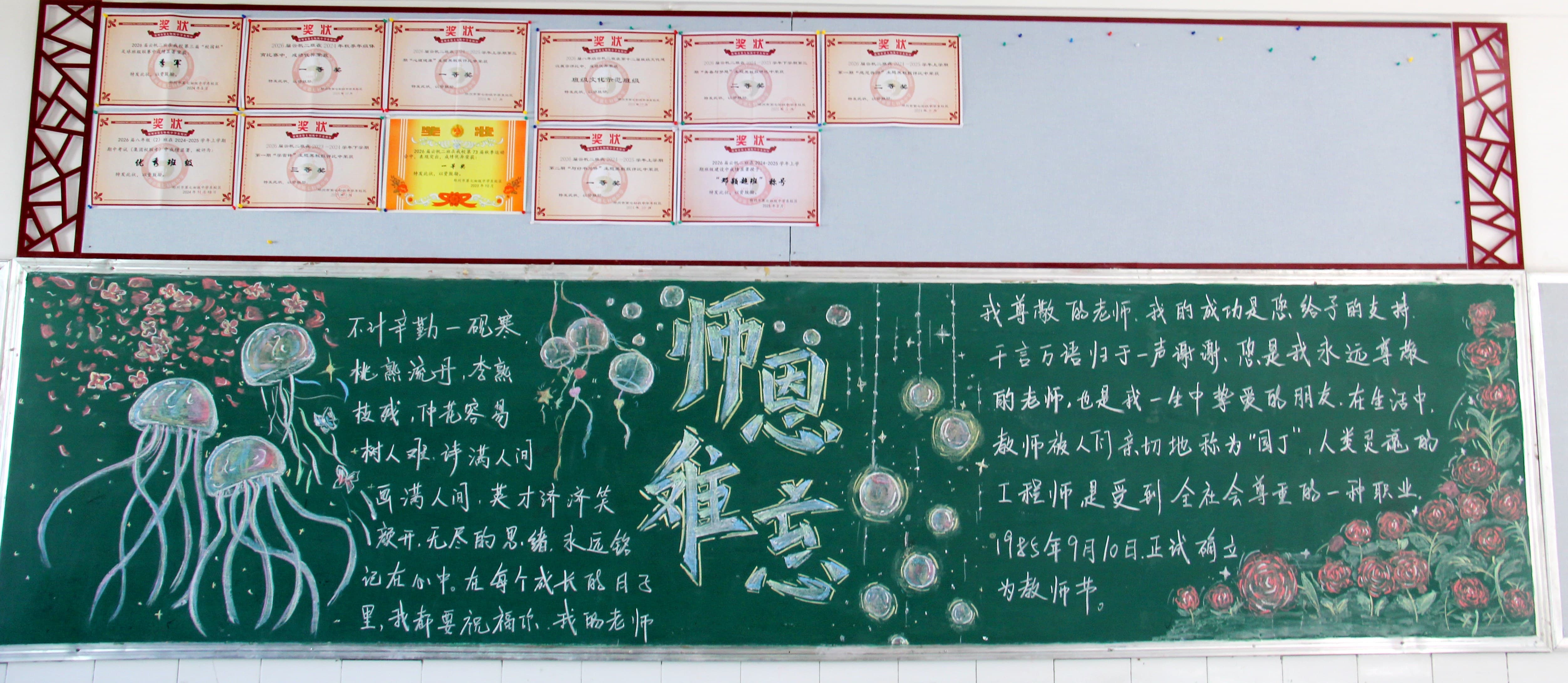 金秋九月,丹桂飘香,为庆祝第41个教师节,营造尊师重教的浓厚校园氛围,各班制作了感念师恩主题黑板。一方方黑板报主题鲜明,设计精美。内容上,既有对教师无私奉献精神的真诚赞颂,也有记录师生之间温暖点滴的感人故事,字里行间充满了对老师的感激与敬爱。