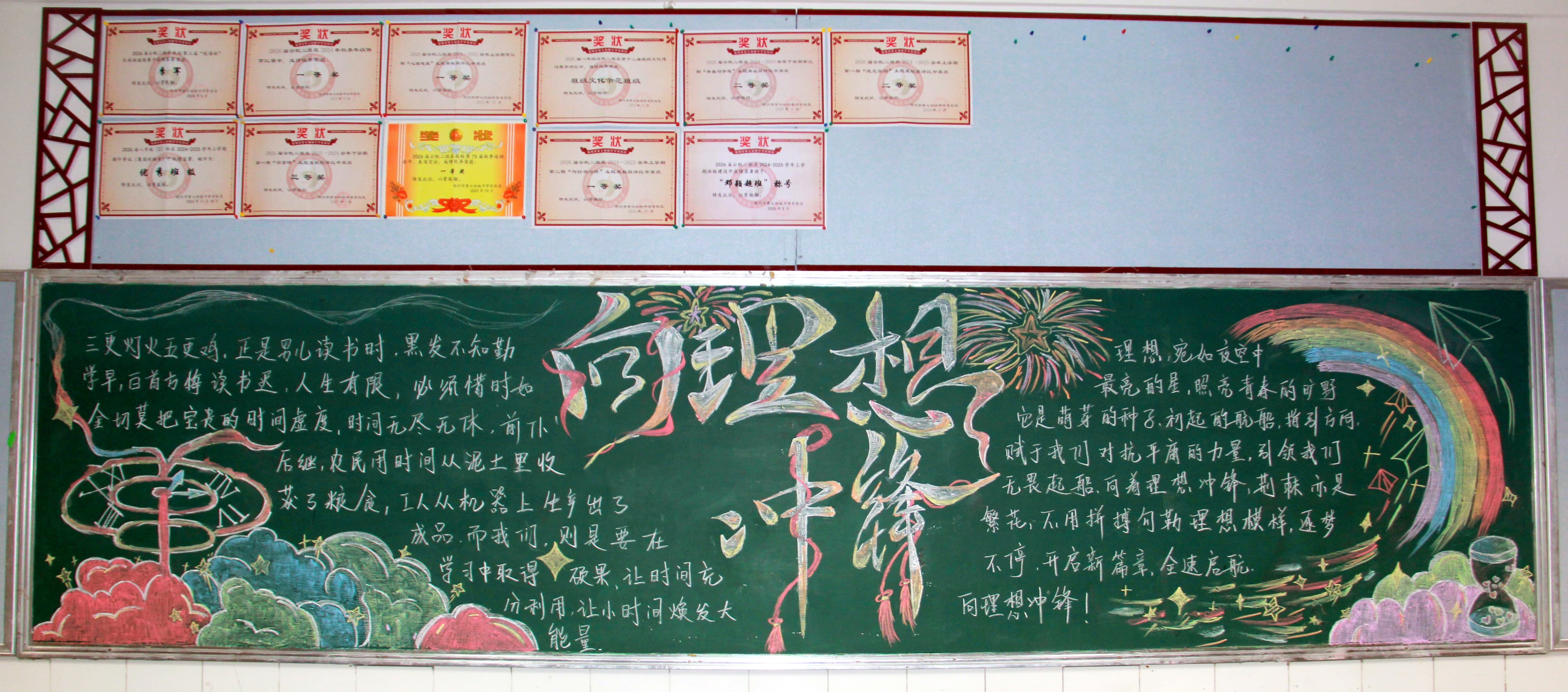 为营造积极向上的校园文化氛围,增强班级凝聚力,10月20日,我校举行黑板报主题展评活动。七年级围绕“我的班级我的家”,用缤纷画笔记述对新集体的热爱;八年级聚焦“建设书香班级”,方寸板报间弥漫着浓郁墨香;九年级则以“走进初三”为主题,字里行间激荡着昂扬的斗志。