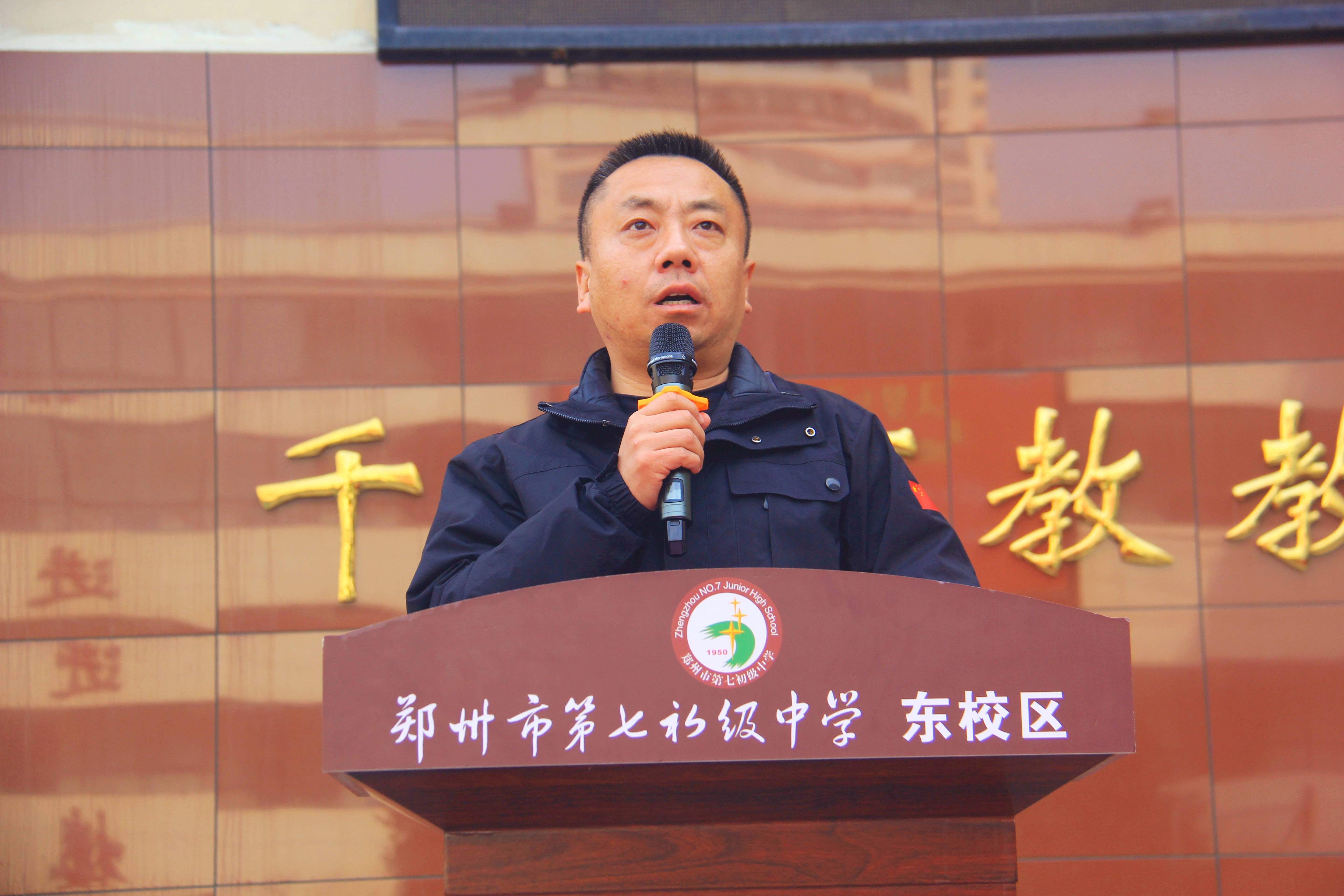 大会伊始,七初东校区党支部书记楚东升讲话,他勉励同学们珍惜百日时光,树立坚定信念,科学规划备考,以无畏的勇气和拼搏的姿态迎战中考,用汗水书写青春答卷,努力做不被定义的自己,话语铿锵有力,催人奋进,为学子们注入了强大的精神动力。