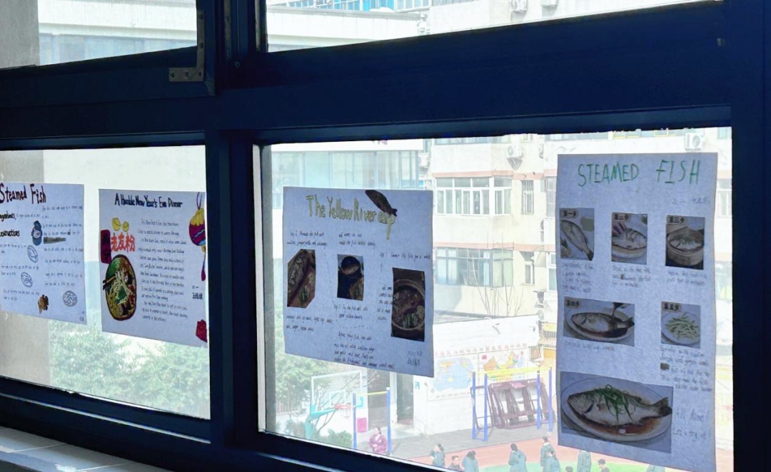在 “Taste of Chinese New Year” 主题展区,学生们用英文记录下春节的团圆时刻与传统美食。图文并茂的手抄报里,有对年夜饭的细致描述,有对红烧排骨等特色菜肴的英文做法讲解,还有对春节民俗文化的生动介绍。同学们用英语讲述中国故事,在实践中提升了跨文化交际能力,让中国年味在校园的方寸之间生动传递。