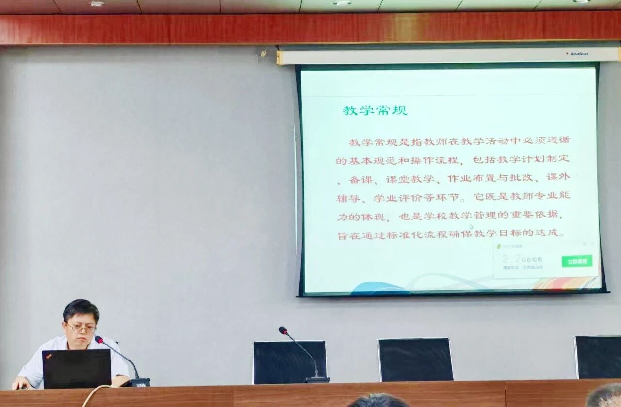 七初东校区教务主任吴元军就“课堂教学”作专题培训,他说课堂是教学的主阵地,提升课堂效益已成为提高学校教育质量的核心环节。他结合自身丰富的教学与管理经验,指出深化教学改革、优化教学策略是打造高效课堂的必由之路,并鼓励教师们积极投身教学创新,灵活运用多种教学方法,着力构建既生动活泼又优质高效的教学氛围,使每一堂课都成为师生共进的精彩舞台。