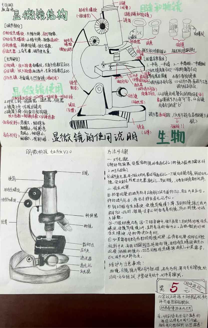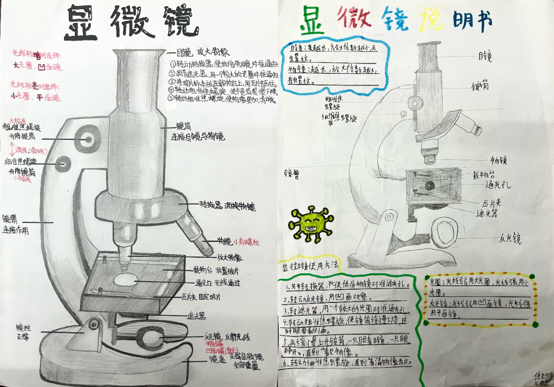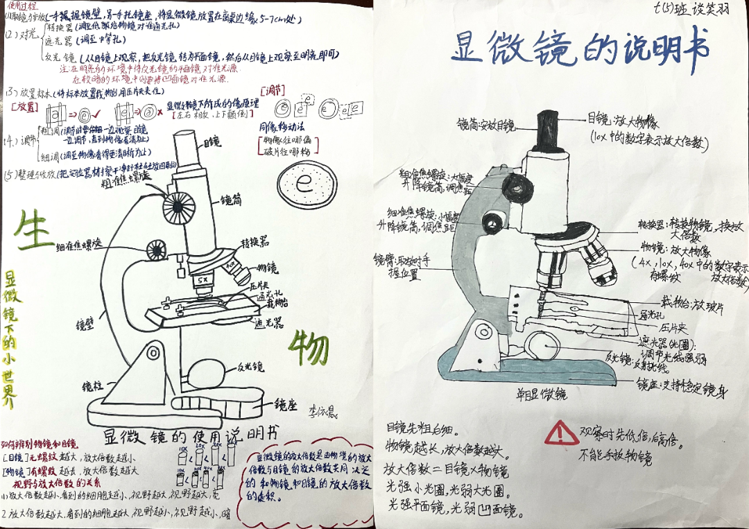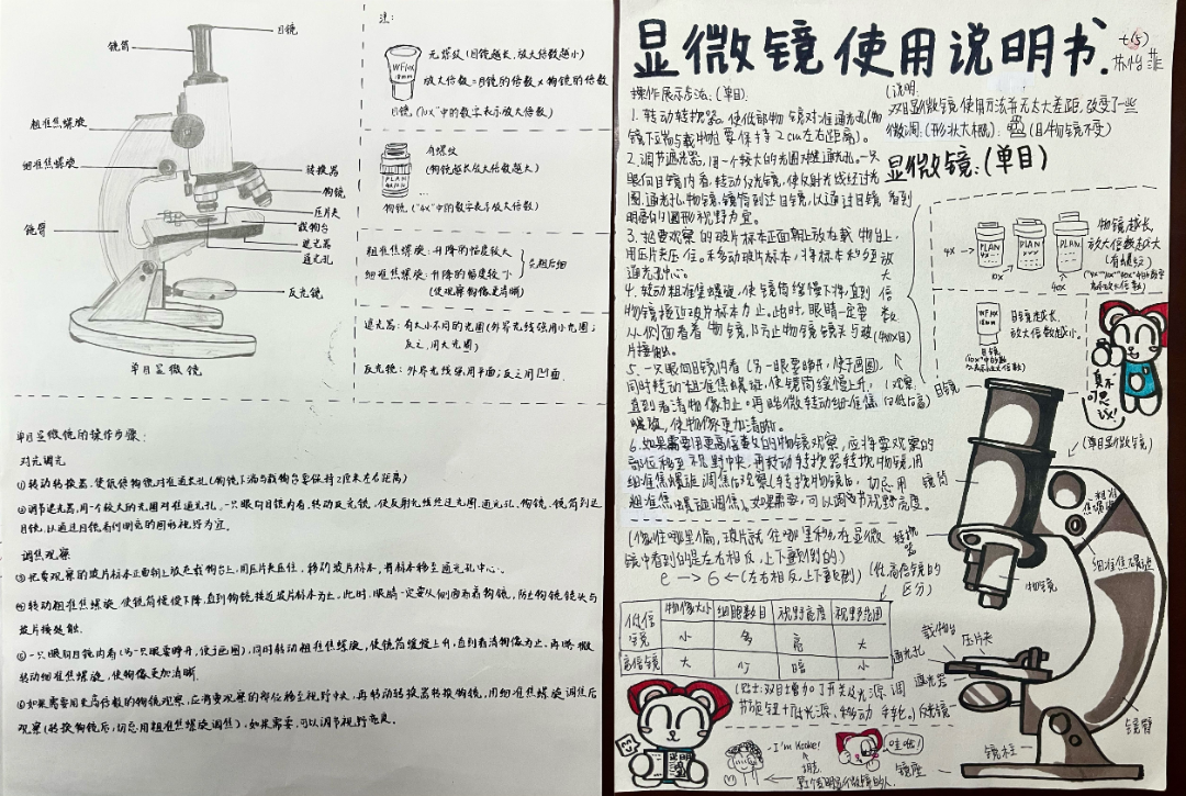 不仅如此,同学们更是充分发挥自身的创造力与想象力,动手制作显微镜说明书。他们以简洁明了的文字,搭配上生动形象的插图,将显微镜的使用方法、注意事项等关键内容详尽地阐述出来,仿佛一个个小小的科学家,在向他人传授宝贵的科学知识。