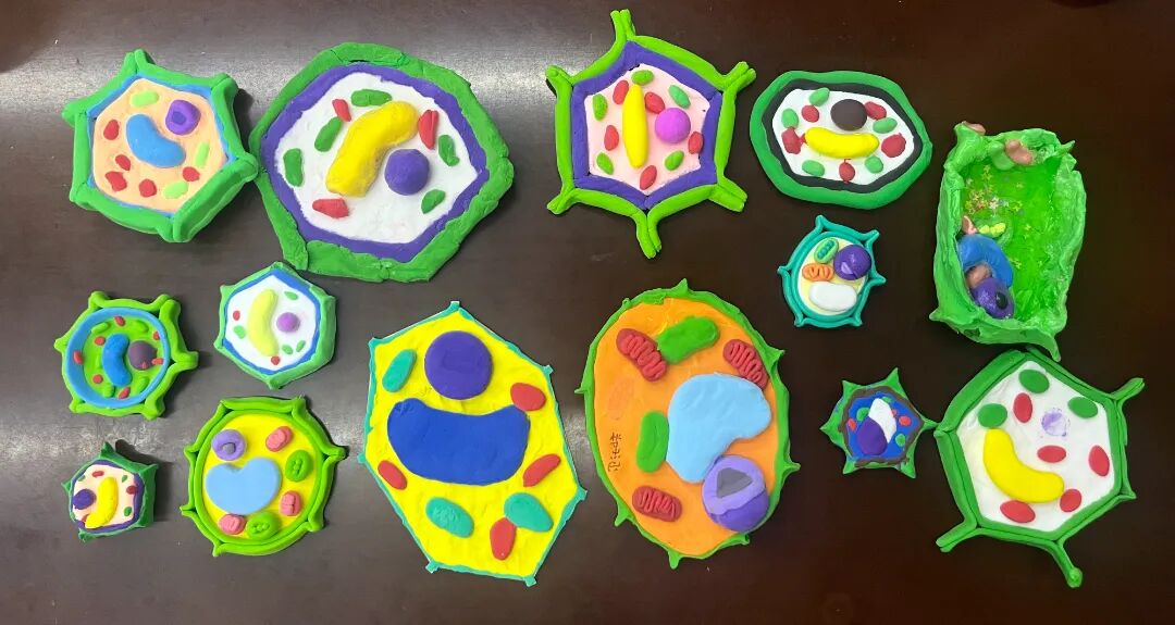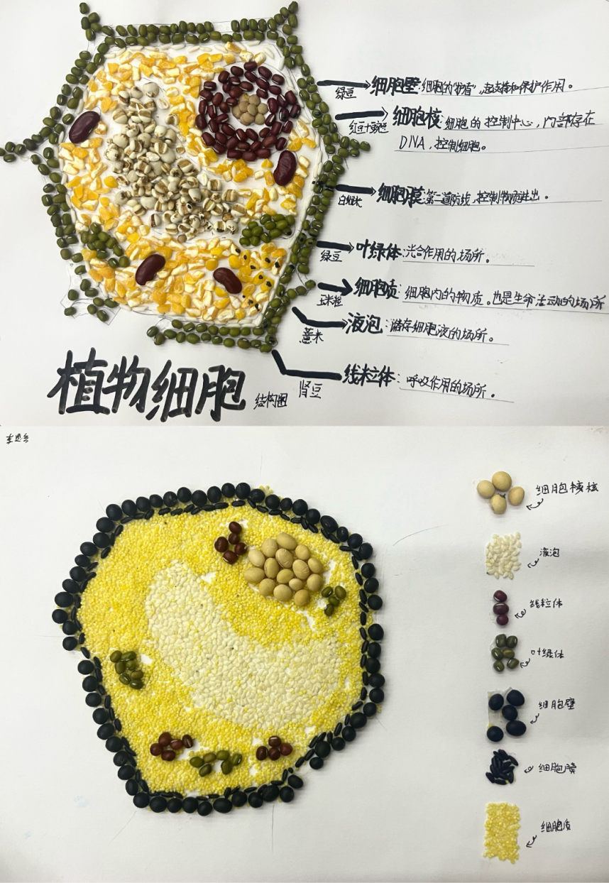 与此同时,同学们还利用各种创意材料,构建起栩栩如生的细胞模型。这些模型不仅精准地展现了细胞的形态与结构,更充分体现出同学们对细胞知识的深刻理解与把握。